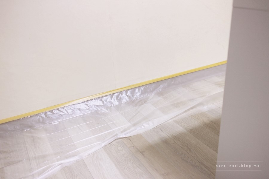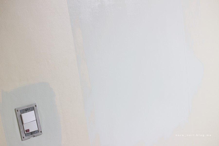 옮길 가구가 가장 적은 벽면부터 페인팅을 시작했어요.