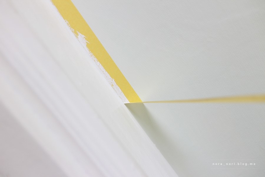 마스킹테이프를 붙인 후 붓으로 칠했어요.